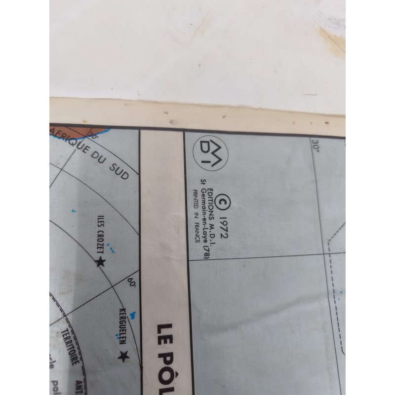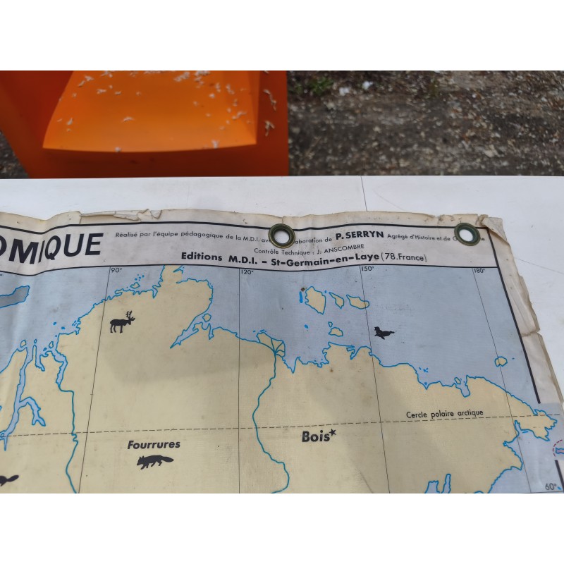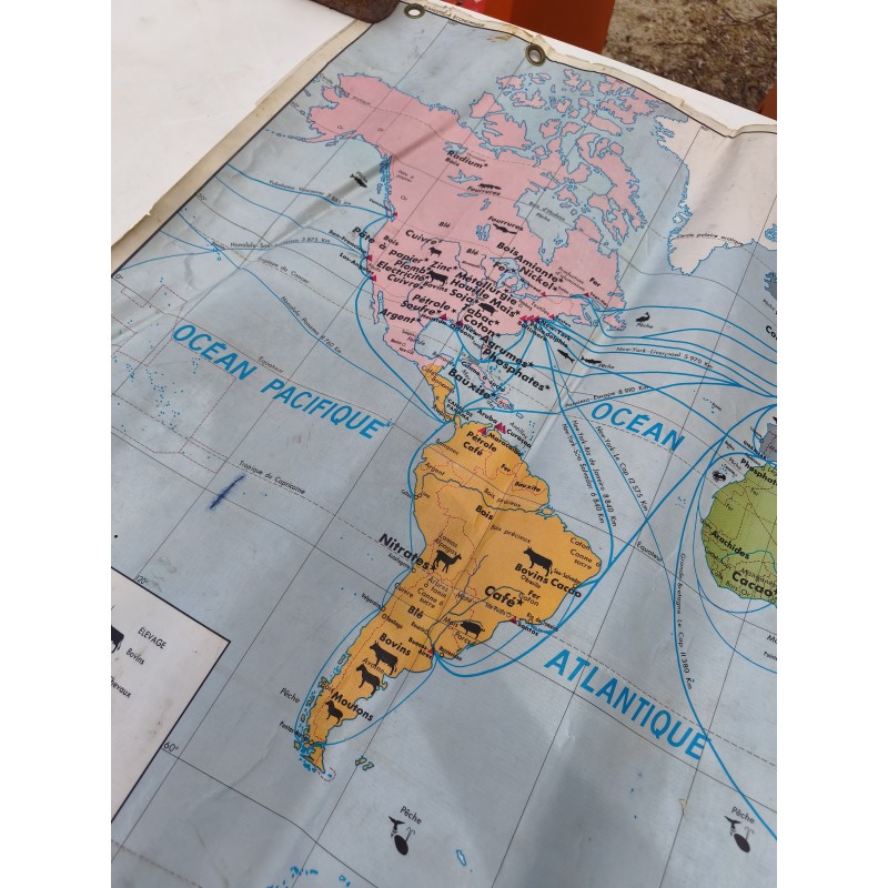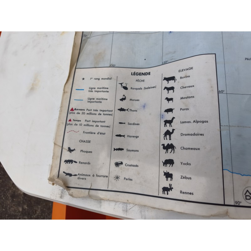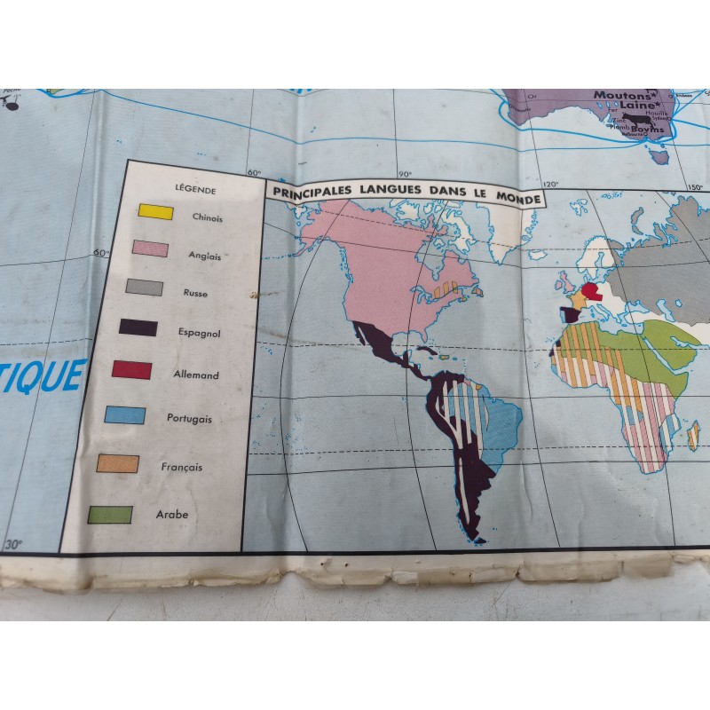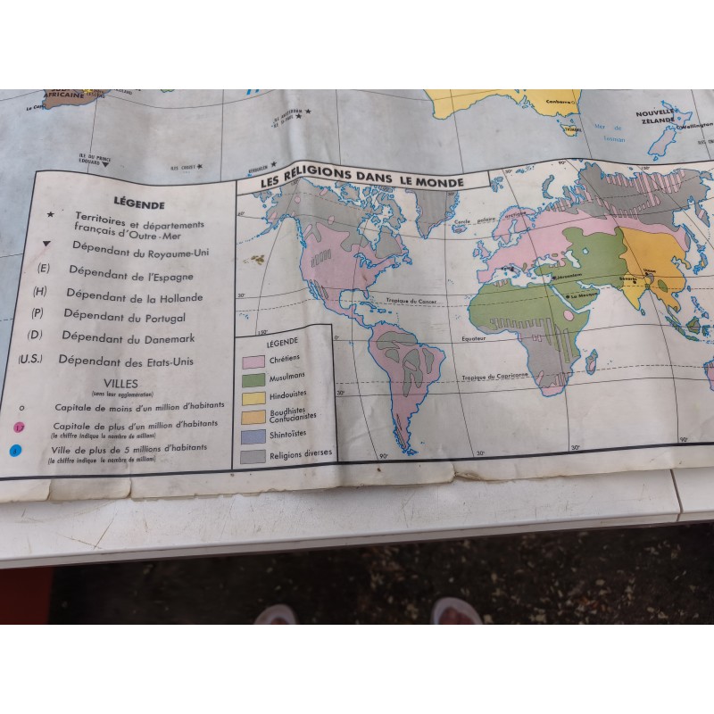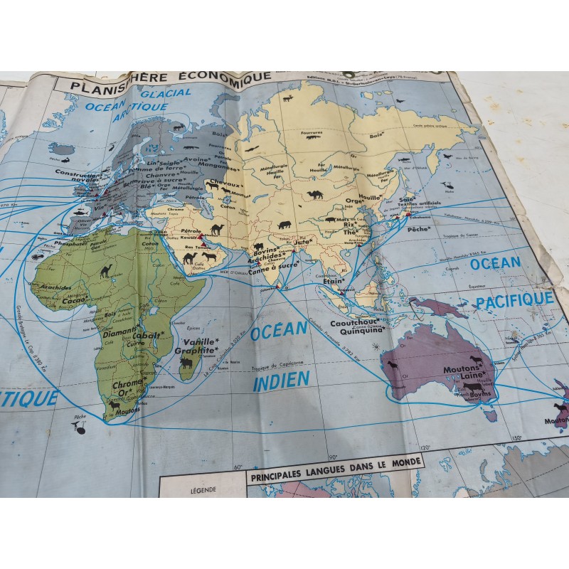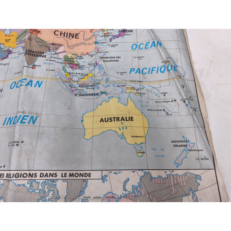 Carte du Monde Plastifiée par P.Serryn 1972 , dimensions : 123 cm sur 91 , Double façe , en l'état